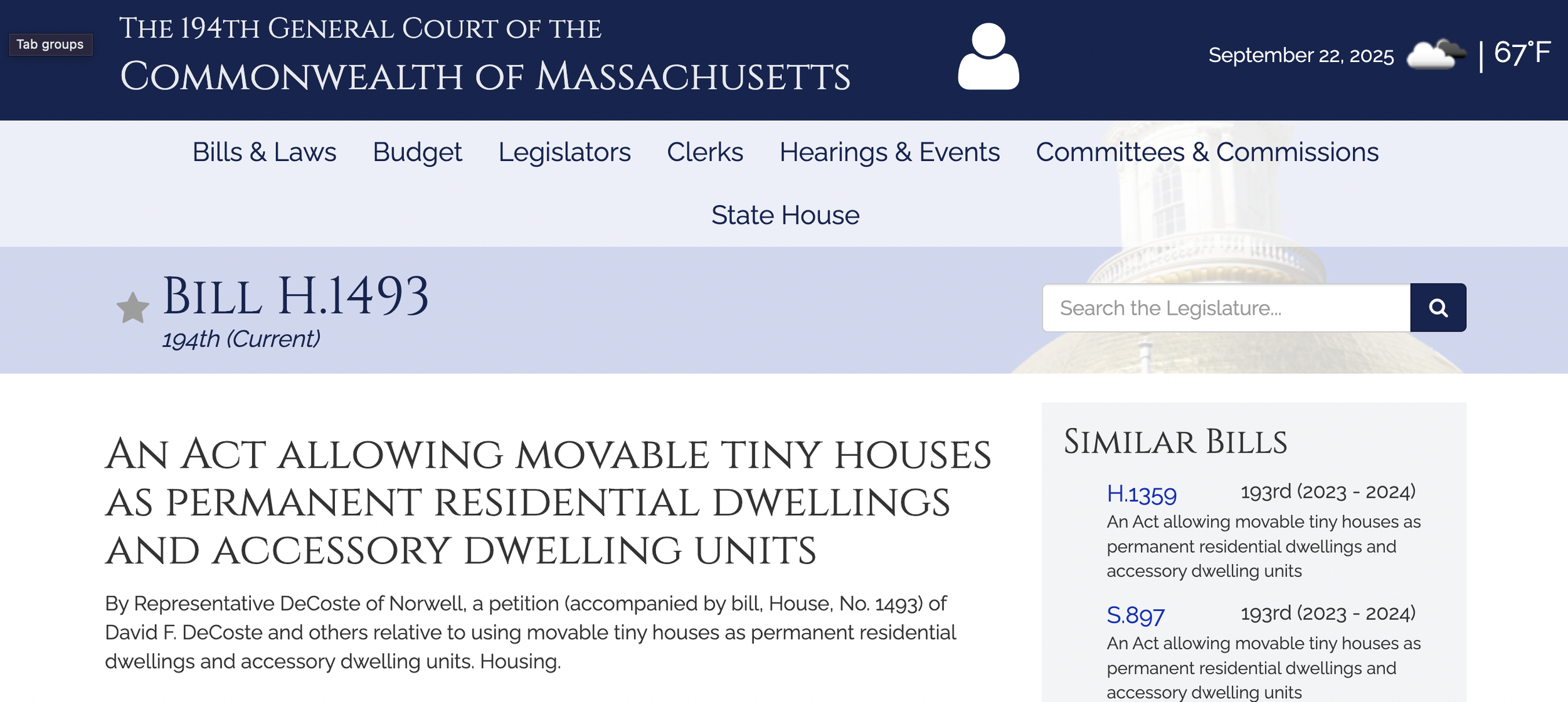 The movable tiny home would need to be licensed and registered with the Massachusetts Registry of Motor Vehicles and be certified that it meets requirements set by the American National Standards Institute or the National Fire Protection Association standards, Turnbull's proposal says.